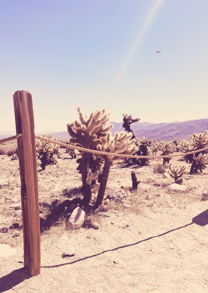 Wenige Meilen später lassen wir die eigentümlichen Steine hinter uns und widmen unsere Aufmerksamkeit der beeindruckenden Vegetation – angefangen mir den Joshua Trees. In der Mitte des Parks finden sie sich zu Tausenden. Wie ich anderer Stelle schon einmal sagte, sehen die für mich immer aus wie etwas, das sich nicht entscheiden konnte, ob es Baum, Palme oder Kaktus werden wollte. Und nachdem mir letztes Jahr mal so ein Biest ordentlich in den Hintern gepiekt hat, weíß ich auch: Die sehen zwar lustig aus – aber mit denen ist nicht zu spaßen.