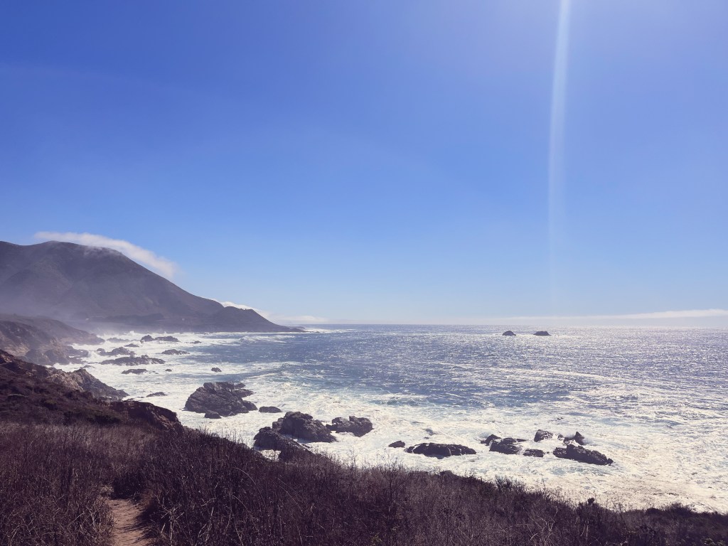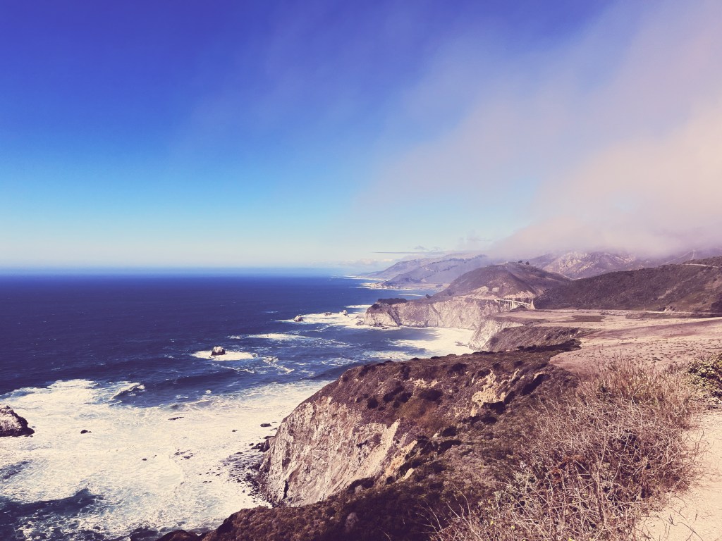 Bevor wir uns jedoch lange an diesem trüben Gedanken aufhalten können, macht der Highway eine lang gezogene Linkskurve – und da ist er endlich! Der Pazifik! Ds Panorama von hier, hoch oben in den Bergen, ist unbeschreiblich. Majestätisch glitzert das Wasser in der Nachmittagssonne – dort wo die Wellen tosend mit ungeheurer Kraft an die Steilküsten schlagen. Das schönste aller Stücke dieser Traumstraße liegt nun direkt unter uns und ich gebe Gas um dem Schauspiel alsbald ganz nah zu sein.