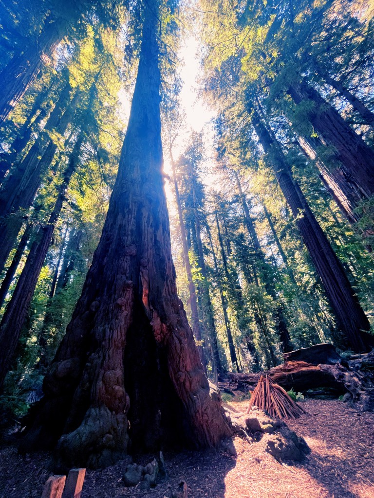 Andächtig stehen wir noch eine Weile am Aussichtspunkt bevor wir uns auf den Weg machen, den 17 Mile Drive zu verlassen. Unsere heutige Route wird uns am Ende des Tages nach Santa Cruz führen – aber vorher nehme ich meine Passagiere noch mit in den „Redwood State Park“, eine Ansammlung der wohl beeindruckendsten Bäume auf dem Planeten. Hier stehen verschiedene Wanderrouten zur Auswahl. Von „ich will nur mal kurz gucken“ bis hin zu „ich hab den ganzen Tag Zeit und die stabilen Wanderschuhe an“ ist alles dabei. Erfreulicherweise haben die hier den kleinen Loop, eine Meile lang für die Eiligen und Anfänger, gleich durch das Gebiet mit den größten Bäumen gelegt. Sehr clever – der Ami an sich ist ja bekanntlich eher Fußfaul.