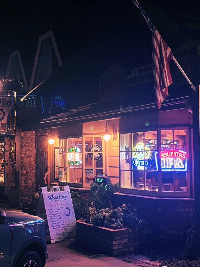 Nachdem die Sonne untergegangen und die Dunkelheit heraufgezogen ist überlege ich, wie ich meinen Abend gestalten soll. Essen aufs Zimmer odern oder ausgehen? Ich entscheide mich für letzteres, besteige nochmal den Truck und fahre ein kurzes Stück nach „Downtown“ – was hier soviel heißt wie eine einzige kleine Straße, auf der die Uhren wohl vor Jahren stehen geblieben sind. Ich hin durchaus angetan!