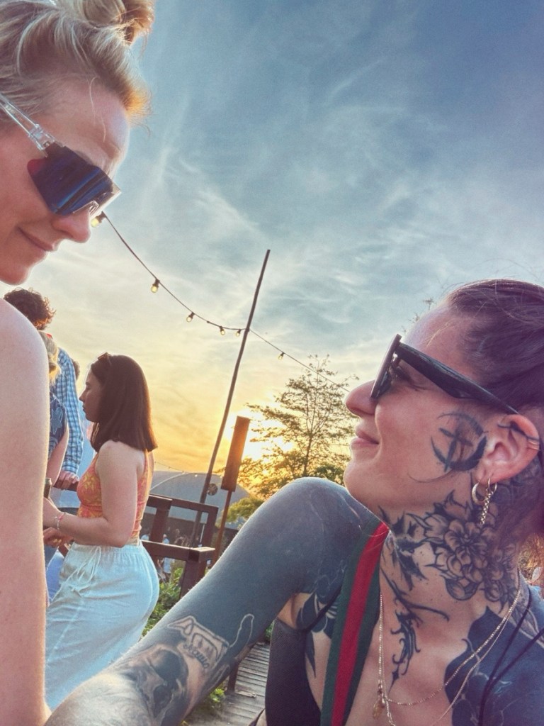 Satt und zufrieden machen wir uns wieder auf den Rückweg. Die Sonne gibt uns geleit, die Drinks sind eiskalt und am Nebentisch trinkt sich ein recht ansehnlicher JGA für den Abend warm. Ich tippe auf Briten oder Iren – was uns wiederum reichlich Stoff für Beobachtung bietet. N paar hübsche Kerle sind dabei und mit derlei Aussicht schmeckt der Wein gliech doppelt gut.