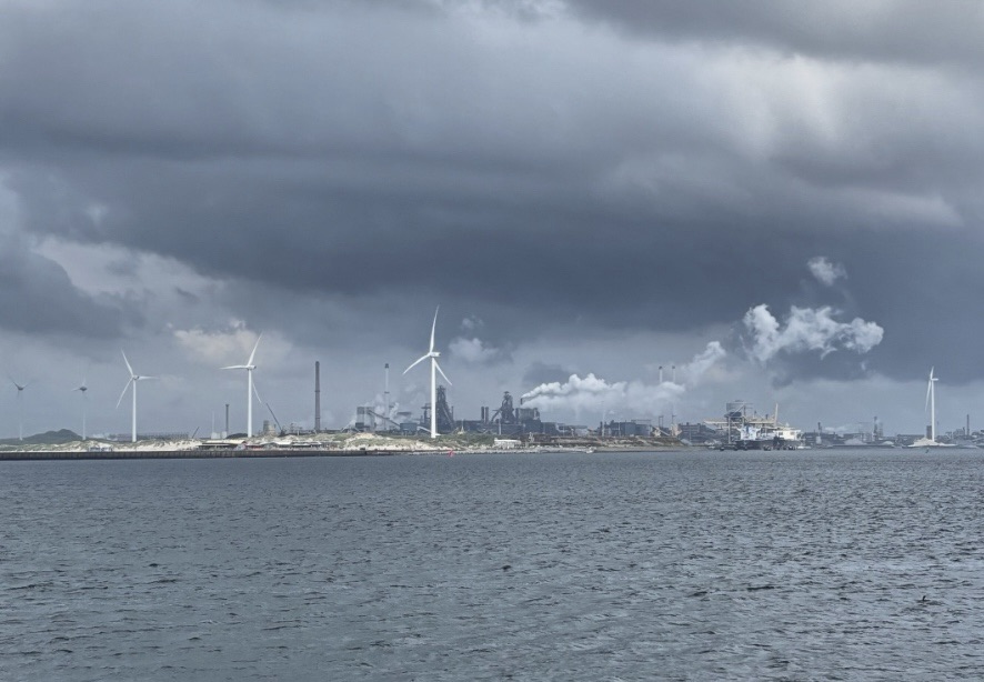 Ganz und gar unchic streiten sich auf der anderen Seite des Kanals die alten Hochöfen der Stahlwerke mit Last- und Portalkränen um den hässlichsten Fingerabdruck in der wenig romantischen Skyline am Horizont. Die etwas morbide Szenerie wird heute passend eingerahmt vom düster anmutenden Ensemble aus tiefhängenden, grauen Wolken und Wasserdampf aus einem guten Dutzend monströser Kühltürme. Beinahe meint man, das dumpfe Hämmern der alten Stahlpressen über den Kanal wehen zu hören (was natürlich nur Einbildung ist – oder Angeberei von Else).