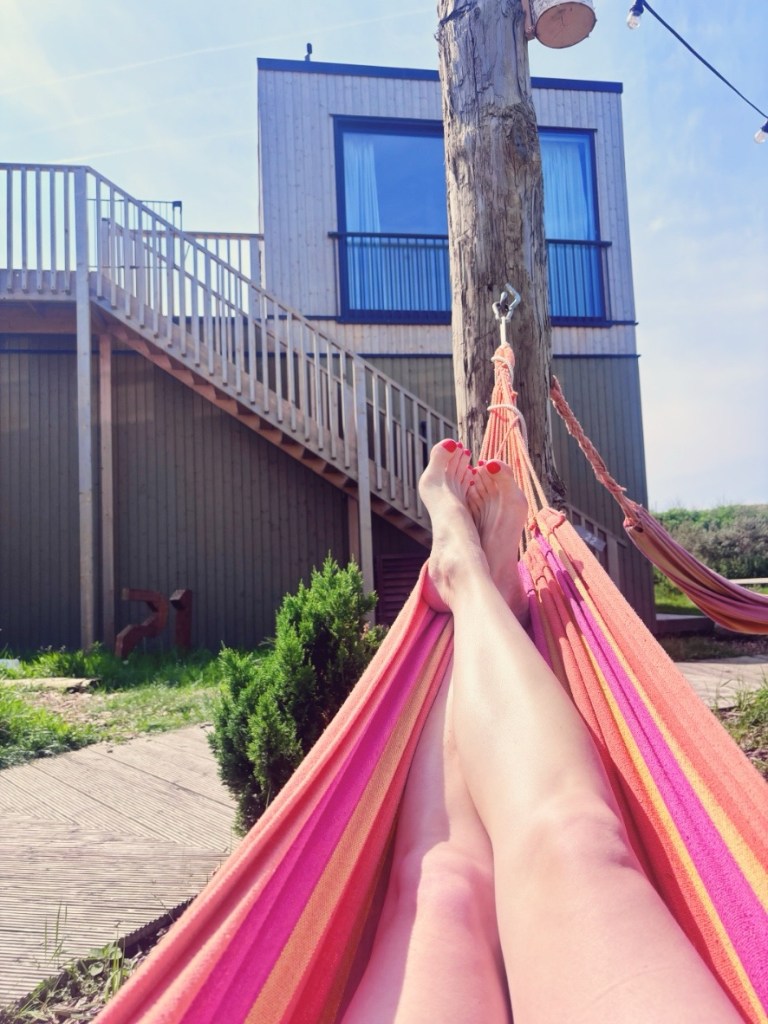 Derart satt und vollgefressen lasse ich mich zunächst in meinem Stuhl zurückfallen und gebe mich wehrlos dem post-fressalen, komatösen Zustand hin. Als ich jedoch gerade die Augen schließen will, fällt mein letzter Blick auf die Hängematte vor dem Haus. Grandios! An die hab ich gar nicht gedacht. Mit letzter Kraft raffe ich mich auf, diese zu entern. Etwas wackelig – aber alsbald hab ich eine bequeme Liegeposition gefunden. Die Sonne scheint, ein leichter Wind streift mein Gesicht, irgendwo zwitschern zwei Vögel und die Nachbarskinder sind am Strand. So dauert es nicht lange bis mir die Augen zufallen.