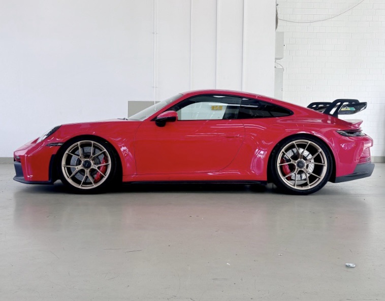 Neben mir steht auf einmal – ebenfalls mit einem Bier bewaffnet – Frank*, ein unerschütterlicher Haudegen, Rennfahrer im Ruhestand und außerdem einer meiner liebsten Clubkameraden. Sein Tracktool wird soeben in den Team-LKW verladen und sein – nennen wir es – „Alltags-Gefährt“ wartet gerade geduldig darauf, dass der Weg aus der Box frei gemacht wird. Aktuell steht hier noch ein anderes Fahrzeug beim Räderwechsel im Weg. Die Zwangspause nutzend, schwatzen wir ein wenig über den Tag und mein Unglück bevor Frank mir ohne jedes Zögern anbietet, mich mit nach Hause zu nehmen. Somit hat mein „Notfallplan“ auf einmal bemerkenswert wenig mit „Not“ zu tun als sich rausstellt, dass mein heutiges Taxi nichts weniger sein wird als ein Porsche 911 GT3! In Frank-typischem Feuerrot scheint er beinahe ungeduldig darauf zu warten, auf der Autobahn das Ende der Nahrungskette markieren zu dürfen.