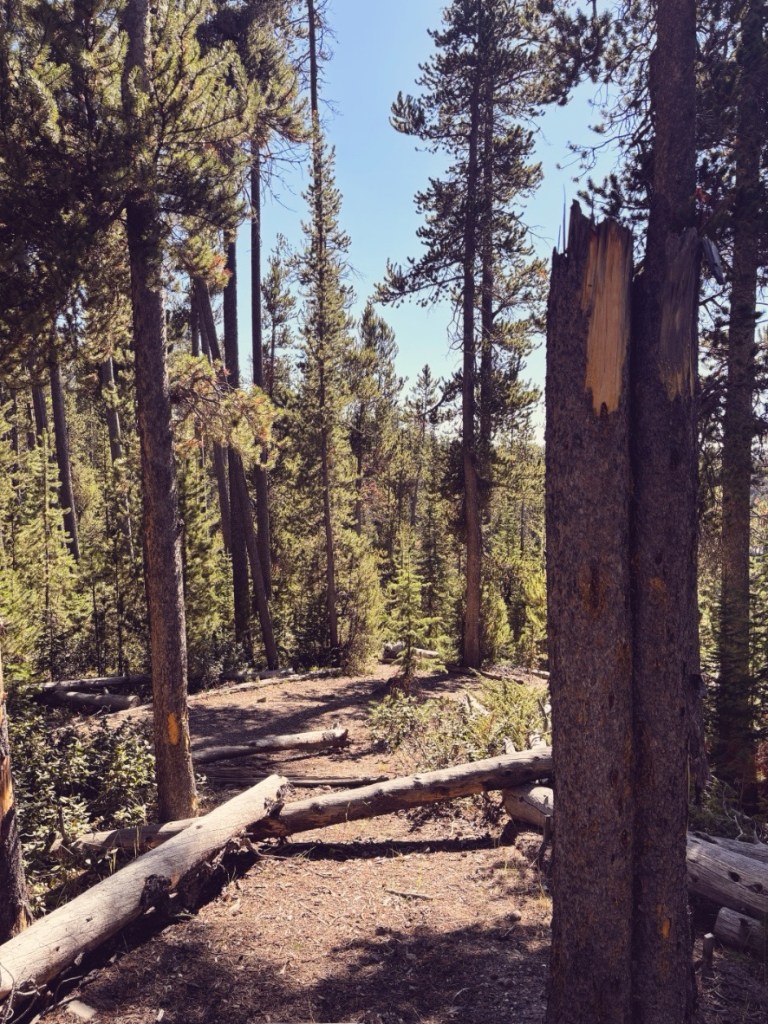 Schweren Herzens wende ich mich irgendwann zum Gehen, denn es gibt noch zahlreiche andere Dinge zu sehen: Einen versteinerten Baum, mehrere Wasserfälle, hoffentlich ein wenig „Wild Life“ und am Ende den großen „Yellowstone Lake“… Kurzum: Ich muss weiter.