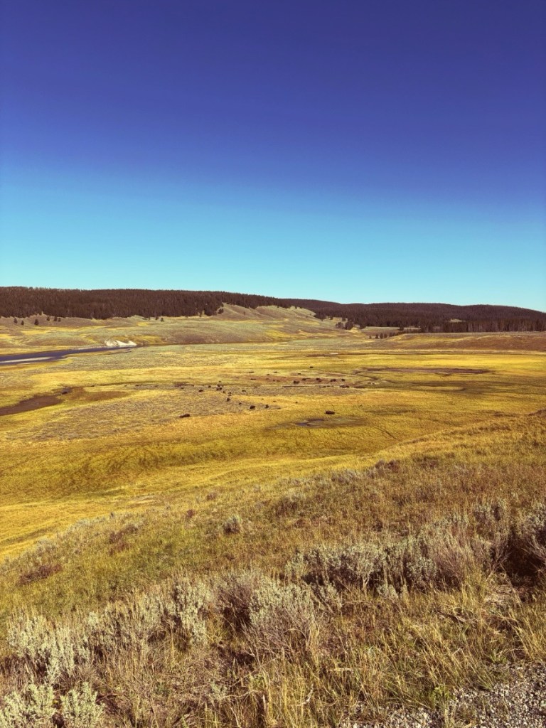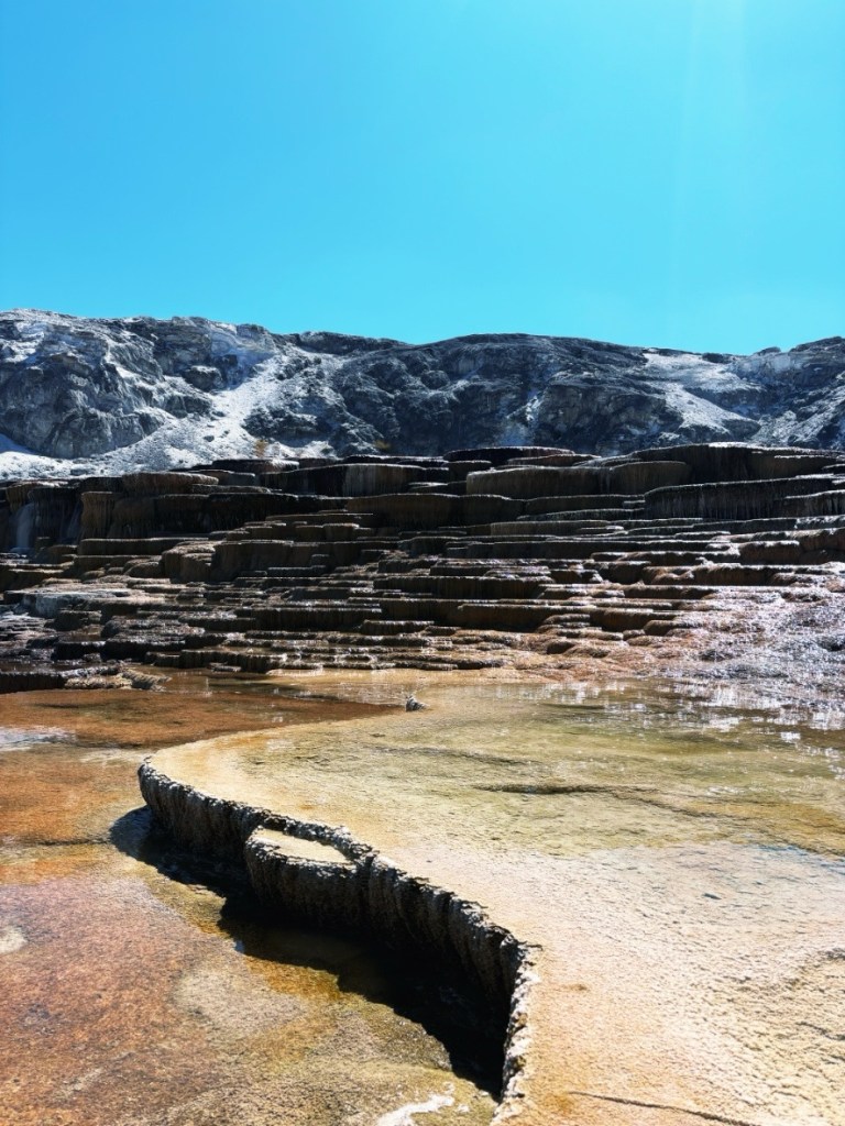 Mein erstes Ziel im Yellowstone: „ The Mammoth hot springs“. Ich hatte mir bereits im Vorfeld aus der Vielzahl an Sehenswürdigkeiten einige rausgesucht und schon früh beschlossen, nicht auf direktem Weg sondern über die „Grand Loop Road“ durch den Park zu fahren.