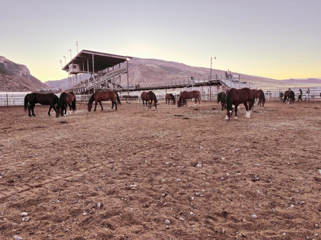 Was dann folgt ist quasi Life-Bucketlisting. Der Parkplatz ist voll mit Bullenfängerbehangenen Trucks, vor dem Tickethäuschen tummeln sich weiße Stetsons, Boots und Chaps und in der Arena: Pferde. Bullen. Cowboys. Bierstände. Es ist Jahrmarkt – auf Wild West Art..! Mein Herz schlägt Purzelbäume vor Freude.
