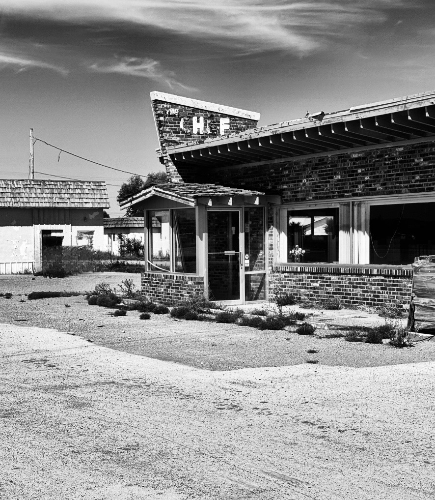 Ein wenig später passiere ich einen „Lost Place“. Am Straßenrand verrottet eine alte Tankstelle samt Diner und Motel. Ich mache einen kurzen Stop und ein paar Schritte über das Gelände.