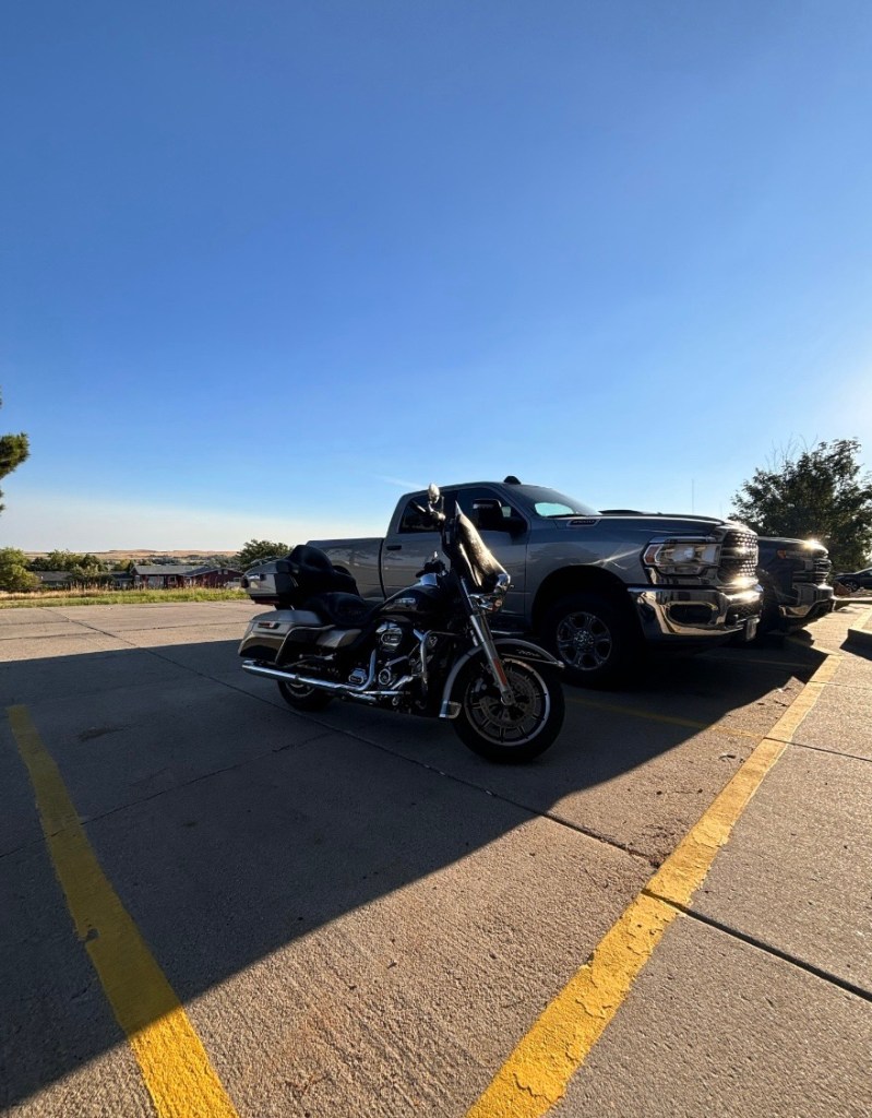 Ich packe mein Zeug zusammen und verlasse Chadron. Mit der heutigen Etappe steht mir der Zweite der beiden komplett durchfahrenen Tage ins Haus. Eine lange Passage erst einmal längs durch Nebraska – und am Nachmittag dann noch einmal quer durch Colorado. Voraussichtlich irgendwas um die 8-9h reine Fahrzeit. Das war der Preis um den Mt. Rushmore zu sehen. Doch mein Ärger über die Enttäuschung ist längst verraucht, die Kühlbox gut gefüllt, in meinem Cupholder steht ein frisch geknackter Eiskaffee und die Sonne scheint. Kann losgehen – beste Laune inklusive.