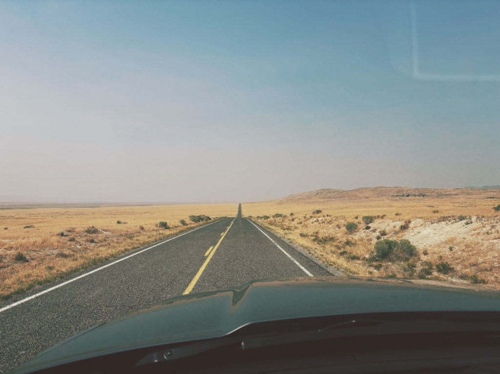 Die Sicht in die Berge liegt bei Null. Präzise kann man die Berge von hier aus nicht mal sehen – und das konnte man gestern noch ganz gut. Das ist jetzt mal GANZ beschissenes Timing, denn ich hatte mir für den „Great Salt Lake“ und die Gegend extra einen kompletten Tag rausgeschnitzt in der Hoffnung auf ganz viel Panorama. Ich gebe die Hoffnung noch nicht auf und versuche erstmal, Richtung Süden aus der Glocke rauszufahren und mit dem „Utah Lake“ zu starten. Das klappt nur so bedingt. Die Sicht ist hier unten zwar 1A, aber die Pfütze ist erheblich größer als gedacht.