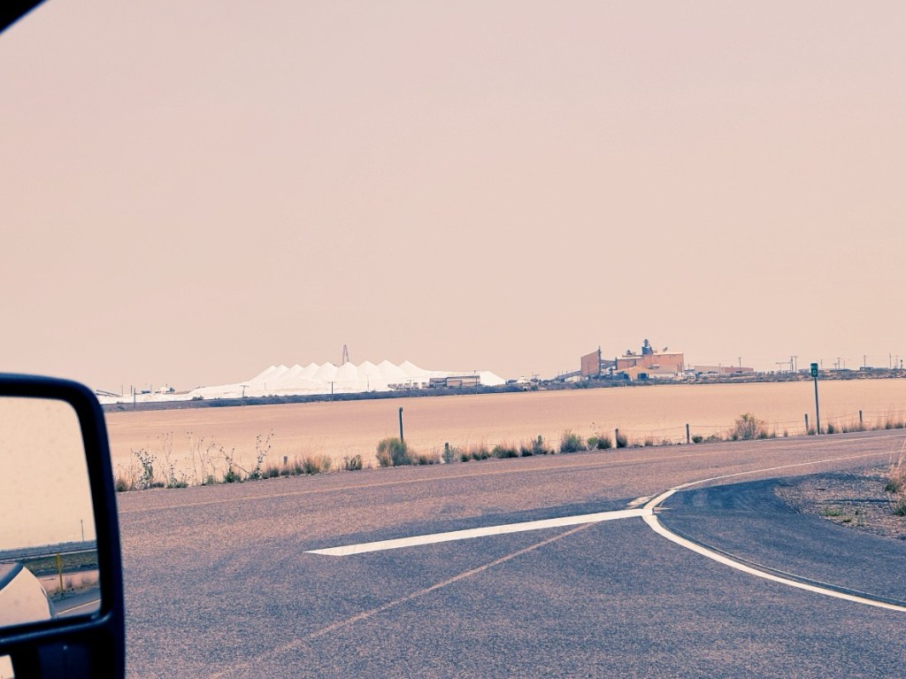 Für den Moment verstehe ich einfach gar nichts. Was machen die hier? Saugen die hier Kubiktonnenweise das Salz aus dem See? Ist der dann nicht irgendwann mal leer? Oder wächst das nach…? Ich lese ja bekanntlich aus Überzeugung keine Reiseführer, deswegen bin ich für den Moment hier gerade etwas …blank. Ein Hochhaus-hoher Haufen Salz neben ein paar Silos am Horizont stützt meine Theorie aber vorerst.