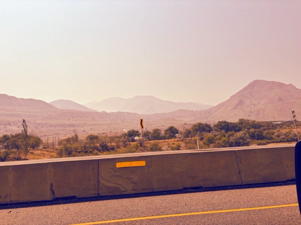 Was aber viel schlimmer ist: Über der Stadt hängt nach wie vor die Käseglocke – und sie wird mit jedem Meter immer dichter. Ich fürchte „Panorama“ wird heute schwierig. Selbst die Berge gleich neben dem Highway liegen im Nebel.