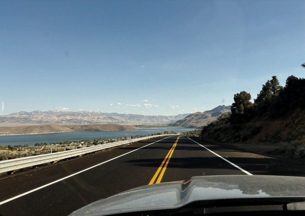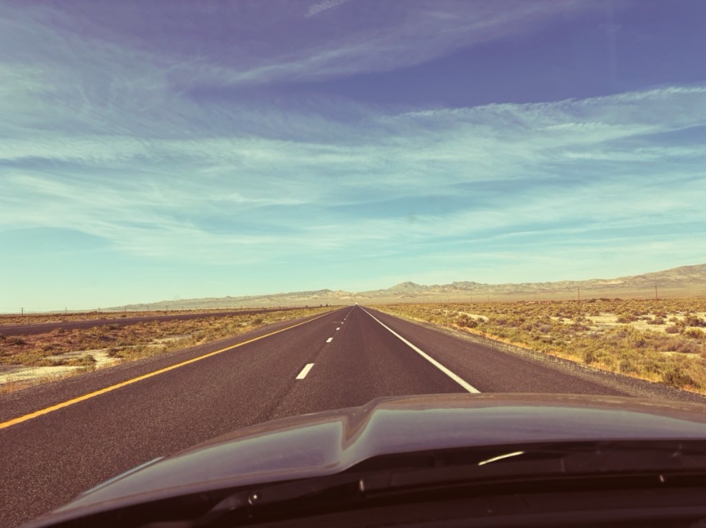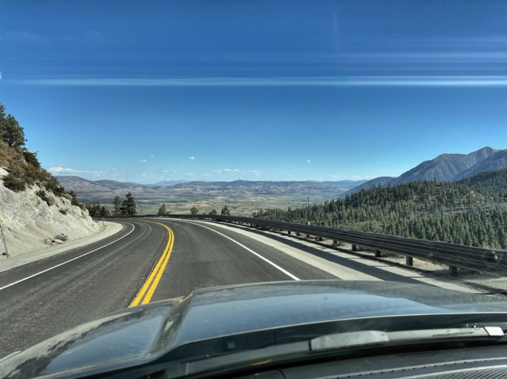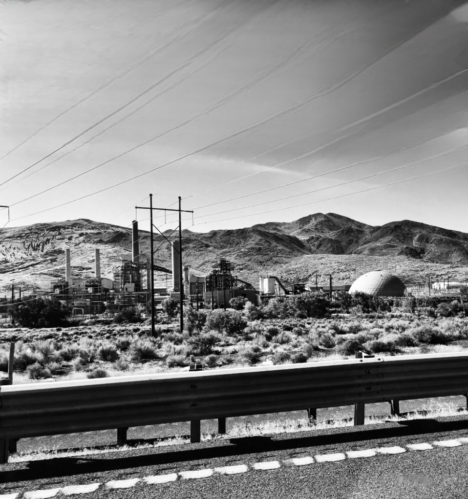 Die Route führt mich heute von Nevada weiter nach Westen über die östlichen Teile der Sierra Nevada zum Lake Tahoe. Der erste Teil der Route geht weitestgehend geradeaus über die Interstate, was mir wieder Gelegenheit gibt, nebenher mein Endzeit-Hörbuch weiterlaufen zu lassen (Atomkrieg, Flucht, Anarchie, Strahlenkrankheit und so….) Kaum, dass die ersten 10 Minuten durchgelaufen sind, traue ich meinen Augen nicht, als sich neben mir auf einmal ein Atomkraftwerk ins Blickfeld schiebt. Der Moment könnte nicht (un)passender oder bemerkenswerter sein, bin ich doch jetzt immerhin schon über 3.000 Meilen unterwegs. Eine kleine Gänsehaut beiseite wischend geht es weiter.