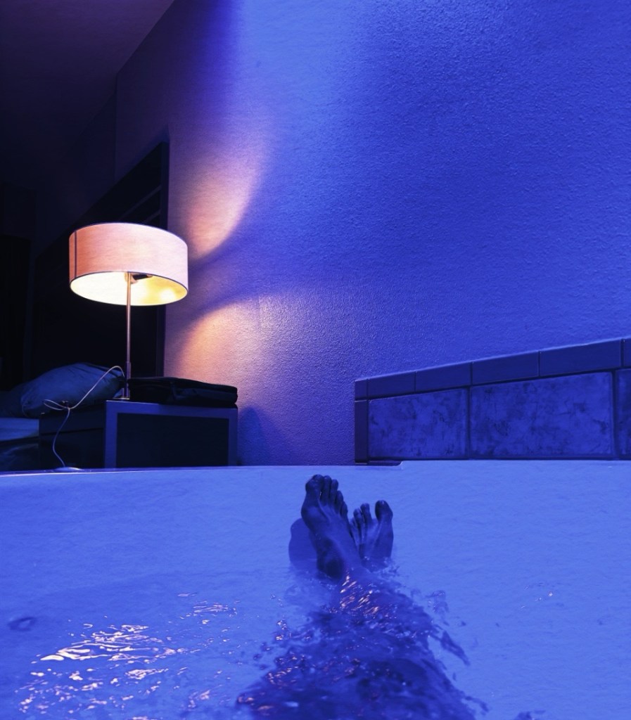 Sehr zu meiner Freude erwartet mich ein Zimmer-Upgrade. Ich hatte zwar ohnehin eins mit Seeblick gebucht, bekomme aber statt des normalen „King-Bedrooms“ eine Suite. Präzise: Die Elvis-Suite. Als ich die Schlüsselkarte durch den Schlitz ziehe und die Tür aufstoße krieg ich den Mund nicht mehr zu. Die Bude ist größer als jedes Münchner Gutverdiener-Appartement, ausgestattet mit Panoramafenstern zum See hin, einer Sitzecke, einem Riesenbett und … einem Whirlpool. Im Wohnzimmer! Wie geil ist das denn bitte…?