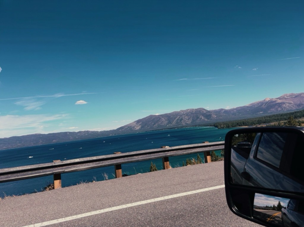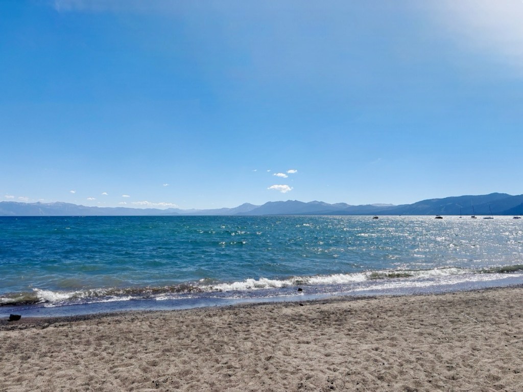 Eigentlich wollte auch ich hier am Kings-Beach, kurz hinter (oder besser gesagt genau AUF der Grenze Kaliforniens) ein Päuschen machen und mir einen schönen Eiskaffee an einem der zahlreichen Strände gönnen, aber es ist einfach zu voll. Ich beschließe, mein Glück ein paar Meilen weiter südwestlich zu versuchen. Groß genug isser ja, der Lake Tahoe.