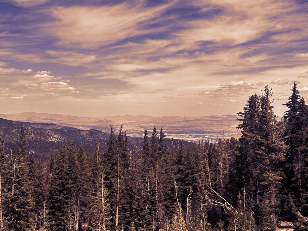 Da mein Hotel aber etwas weiter südöstlich (an einem anderen kleinen See) liegt, verlasse ich den Lake Tahoe alsbald, passiere einmal mehr die Staatsgrenze (zurück nach Nevada für 15 Meilen) und erreiche am späten Nachmittag mein Hotel.