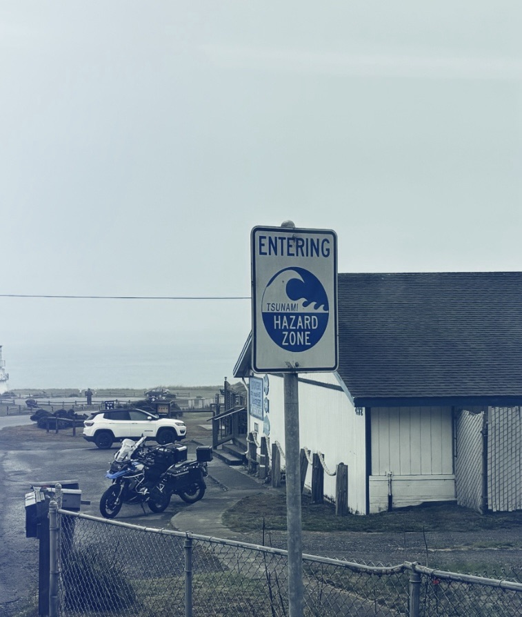 Auch gibt es mal wieder eine neue Kategorie Warnschilder an den Steilküstenabschnitten. Wo gestern noch die Kojoten der Kassenschlager waren, sind heute Tsunami-Warnungen die „Danger du Jour“.