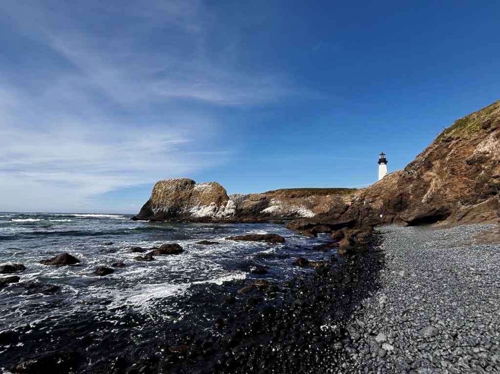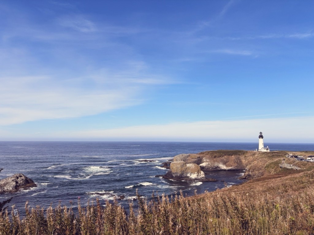 Mit dem Entfall der Höhlenforschung habe ich immerhin beim nächsten Stop etwas mehr Zeit. Mich erwartet: Ein Leuchtturm! Das „Yaquina Lighthouse“ liegt in Mitten eines wunderschönen und weitläufigen Naturschutzgebietes. Ich parke den Wagen an der Rangerstation, schnappe mir meine Windjacke und mache mich auf den Weg.
